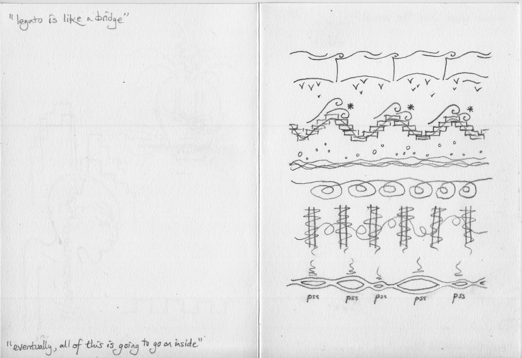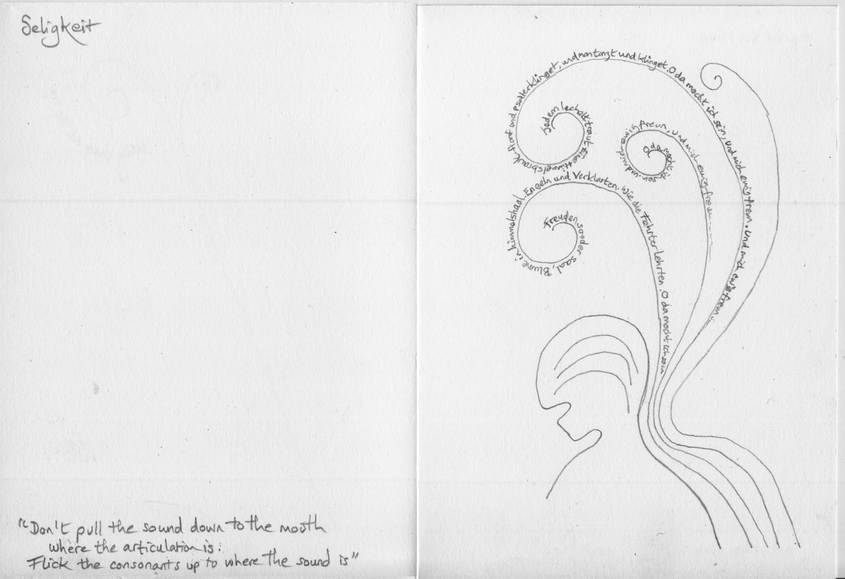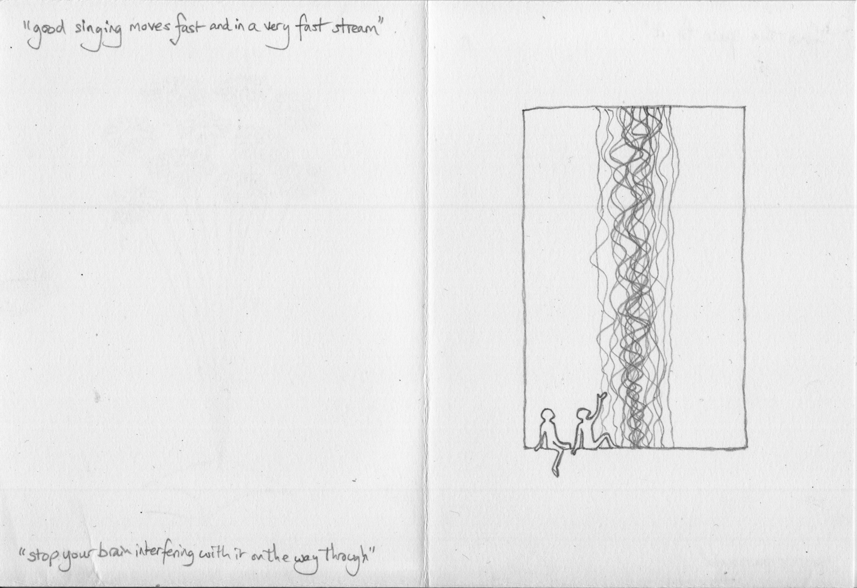I found that if I drew the metaphor and embodied it visually and internally, meditated on the imagery, then I made tangible progress between lessons, even if I had not practised actual singing. In metaphors of tubes, organ pipes, waterwheels of coloured sound and camelled jaws, I began to be able to sing. I began to be myself.